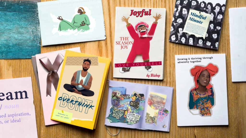 to create a physical reminder of what you have learned and collected throughout your healing journey. This zine is an opportunity to express your creativity and compile key mantras, affirmations, intentions, and notes to self that you can keep with you as you move through the world.